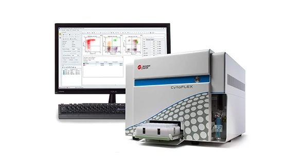 CytoFLEX Flow Cytometer The CytoFLEX Flow Cytometer, the first introduction to the CytoFLEX Platform, provides the performance you need in an easy-to-use system, allowing you to focus on the science, not the instrumentation. Its superior sensitivity and resolution throughout all configurations give it the edge over other cytometry systems four times its size. All instruments in the platform utilize CytExpert for CytoFLEX Acquisition and Analysis Software. -Violet-Blue-Red (V-B-R) Series, fully activated with 13 colors or as few as four, activate additional channels in the future -Includes 13 bandpass filters: 450/45, 525/40 (2), 585/42, 610/20 (2), 660/10 (2), 690/50, 712/25, 780/60 (3) -For higher throughput applications an optional plate loader module is available, and for use in regulated environments the software contains tools for 21 CFR Part 11 compliance