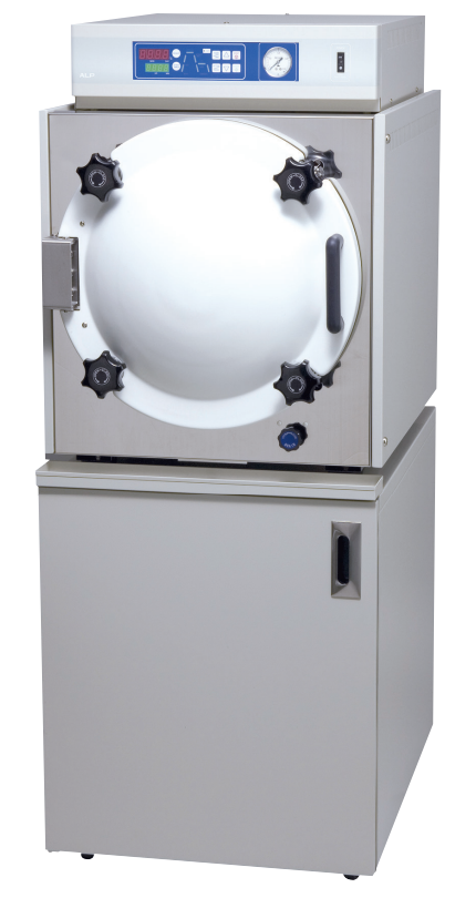 A best-selling & price-performance top-loading laboratory autoclave with one-action safety interlock lid. Handy with functionality. ▪ A good price performance by skilled craftsmanship ALP’s skilled craftsmanship realizes a good price performance with Japanese High Quality. ▪ One-action safety interlock lid. Simply slide the lock lever one action to close the lid securely. ▪ Safety comes first. At the end of the cycle, the lid will not be released until temperature has reached safe prescribed levels. ▪ Three operation modes as standard. In addition to “Sterilization” pattern, “Sterilization/Warming” and “Dissolving/ Warming” patterns as standard. Possible for a liquid sterilization depending on the setting. ▪ Suppresses odor while operation The incorporated water cooling device cools the discharged steam internally to turn it into water droplets, so it does not raise the humidity of the surrounding environment and suppresses odors during processing. ▪ A wide variety of options. *Floating sensor: Measures a load temperature *Printer: Prints the temperature and time on roll paper *Rapid cooling fan: Shortens the temperature drop time with cooling fan *Recorder: Profiles the temperature and time of multiple sensors ▪ Corresponds to IQ/OQ in GMP, GLP. We provide IQ/OQ documentations as an option.